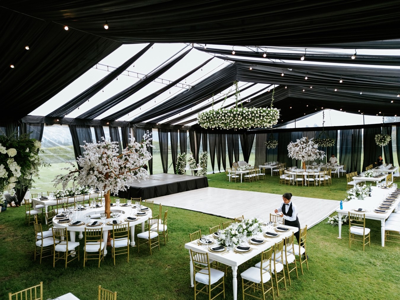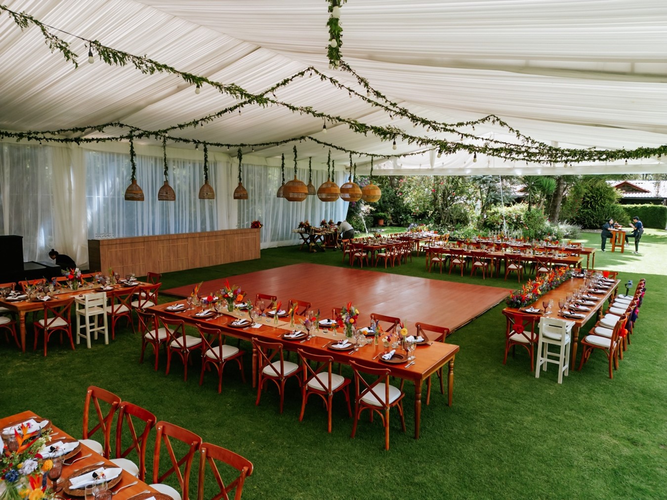 introducción de carpas estructurales que permiten crear espacios personalizados y únicos. A diferencia de las carpas convencionales, estas estructuras ofrecen una mayor flexibilidad y versatilidad, lo que posibilita diseñar un salón completamente adaptado al estilo y la visión de cada pareja. Con la ayuda de HUMADI, cada detalle es planificado y ejecutado para garantizar una experiencia personalizada, logrando bodas memorables y llenas de encanto.